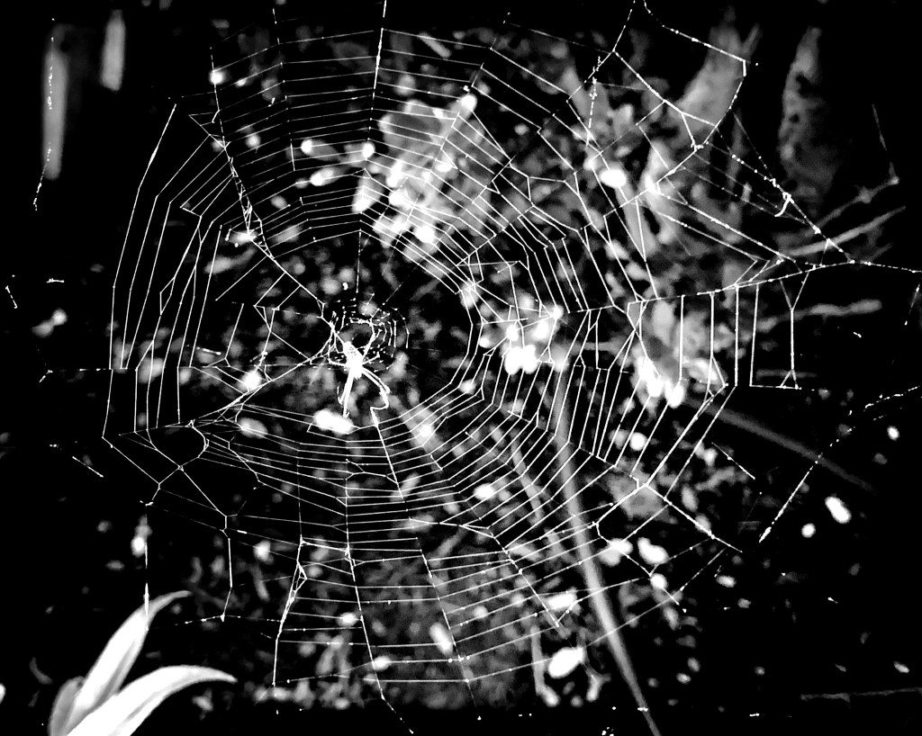 The autumn spiders / setting traps for smaller prey / entangle humans.