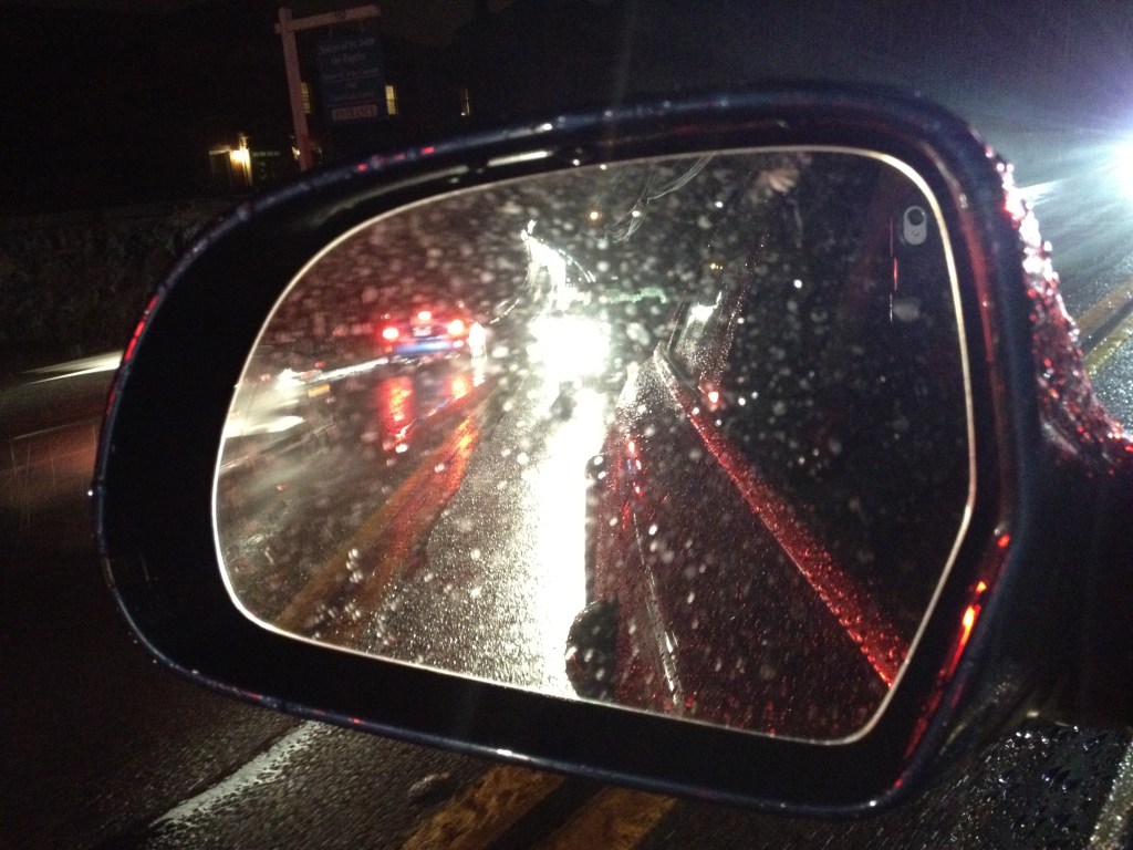 Fool in S.U.V. / hulking presence behind me / urges speed or move.