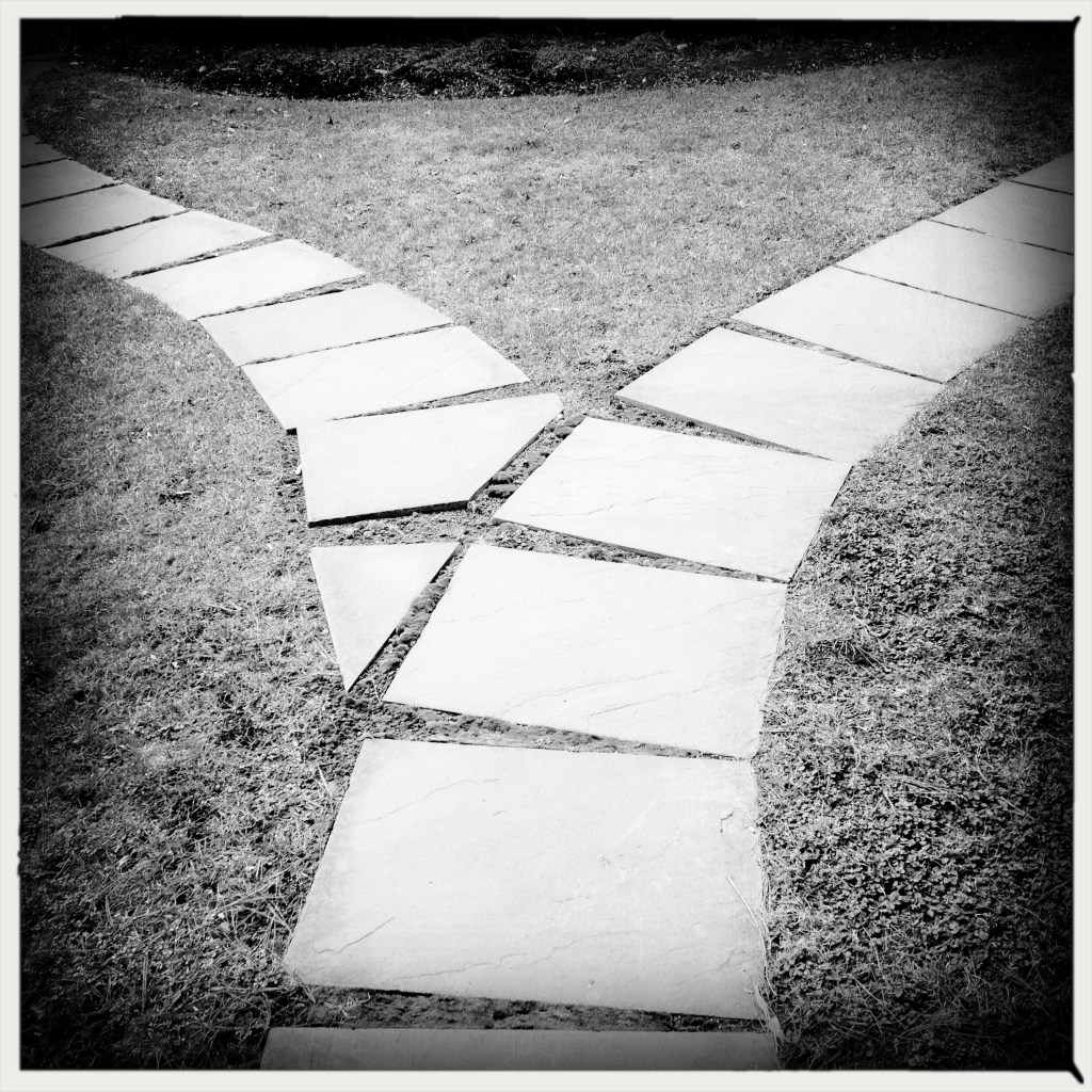 Two stone paths diverged / in a yard, and I took the / one most traveled by.