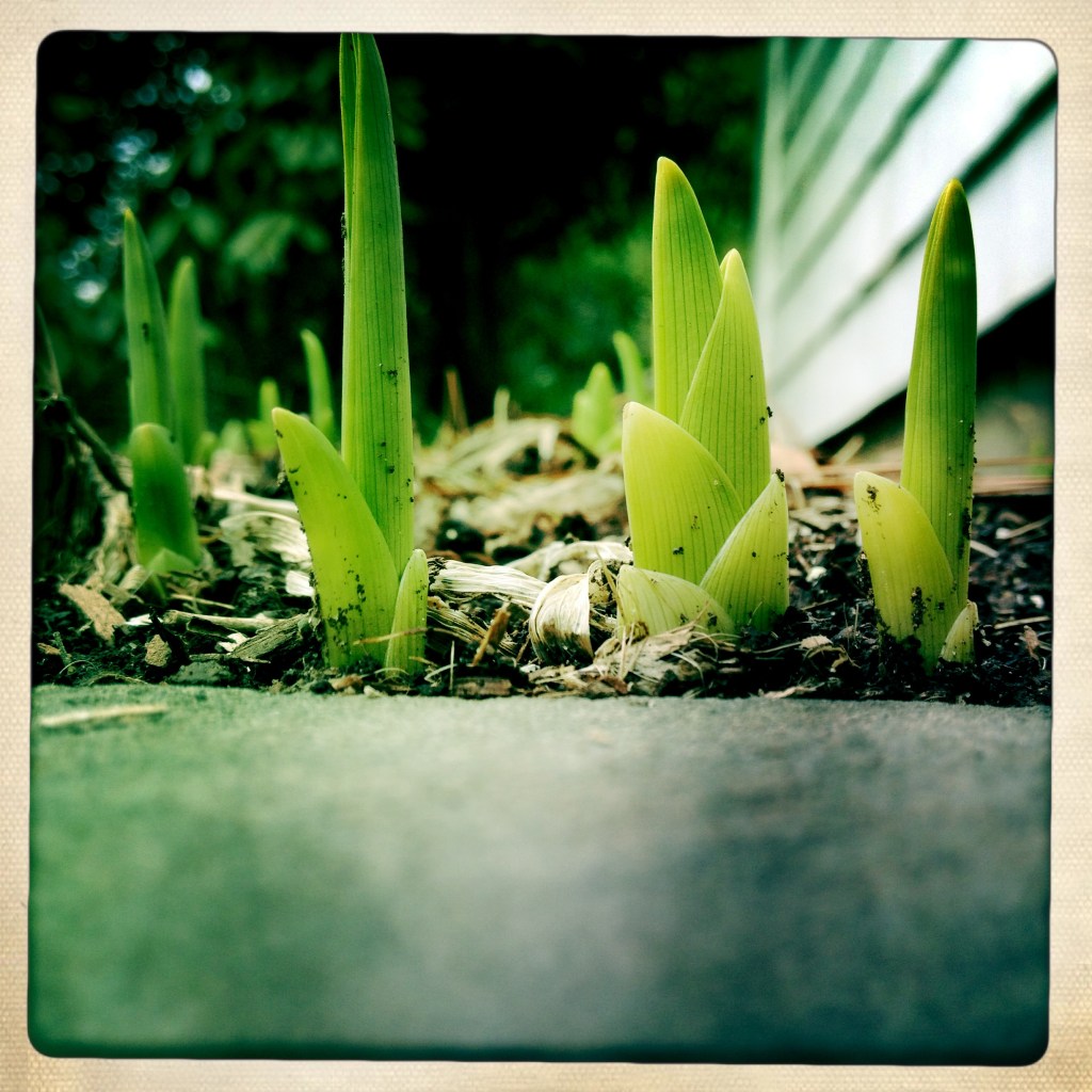 2 responses to “At the flagstone’s edge / upstart day lilies, confused / is Spring truly here?”