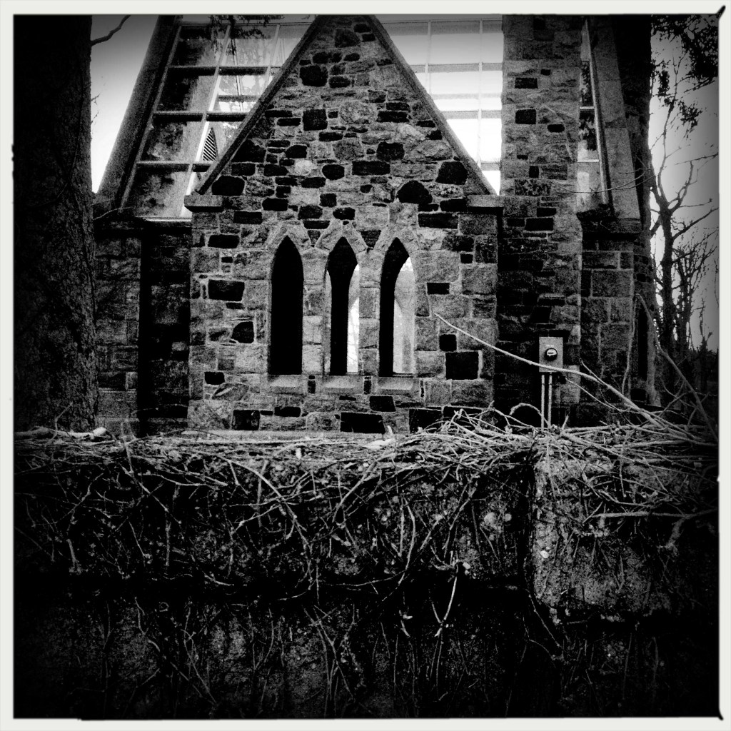 Stone church with glass roof / where once wood beams and thatched straw / kept worshipers dry.