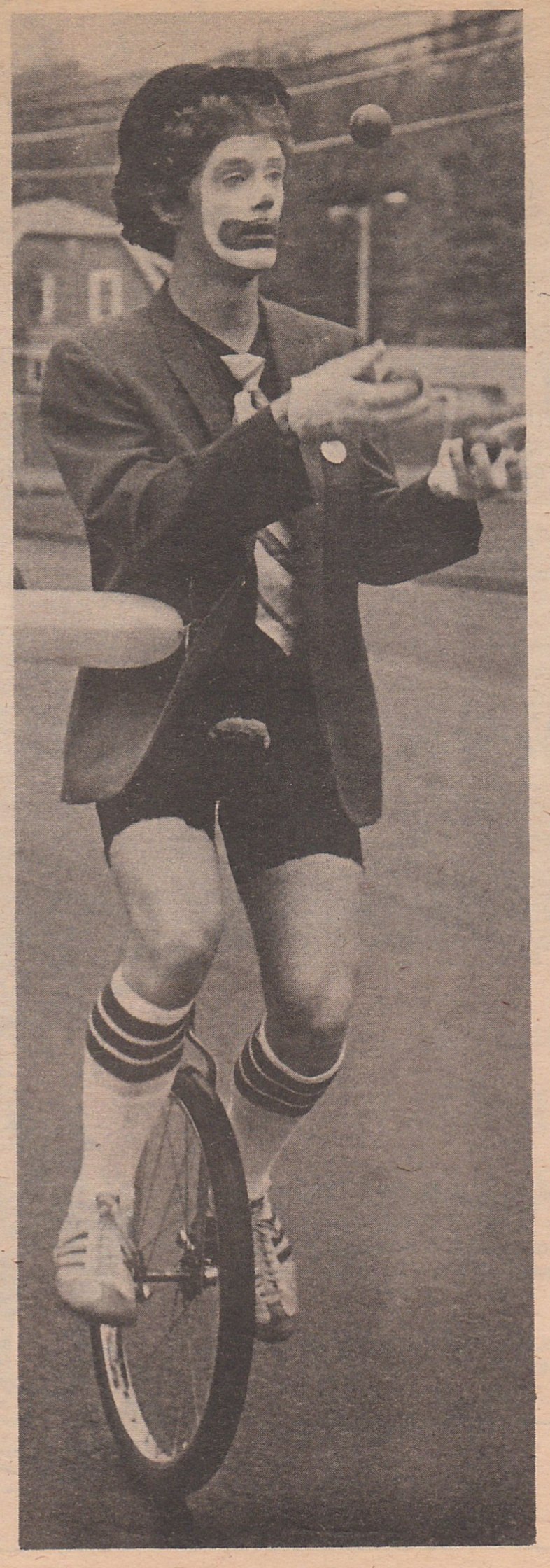 P.S. this is a newspaper pic of me in college (some time ago), juggling and clowning on a unicycle.