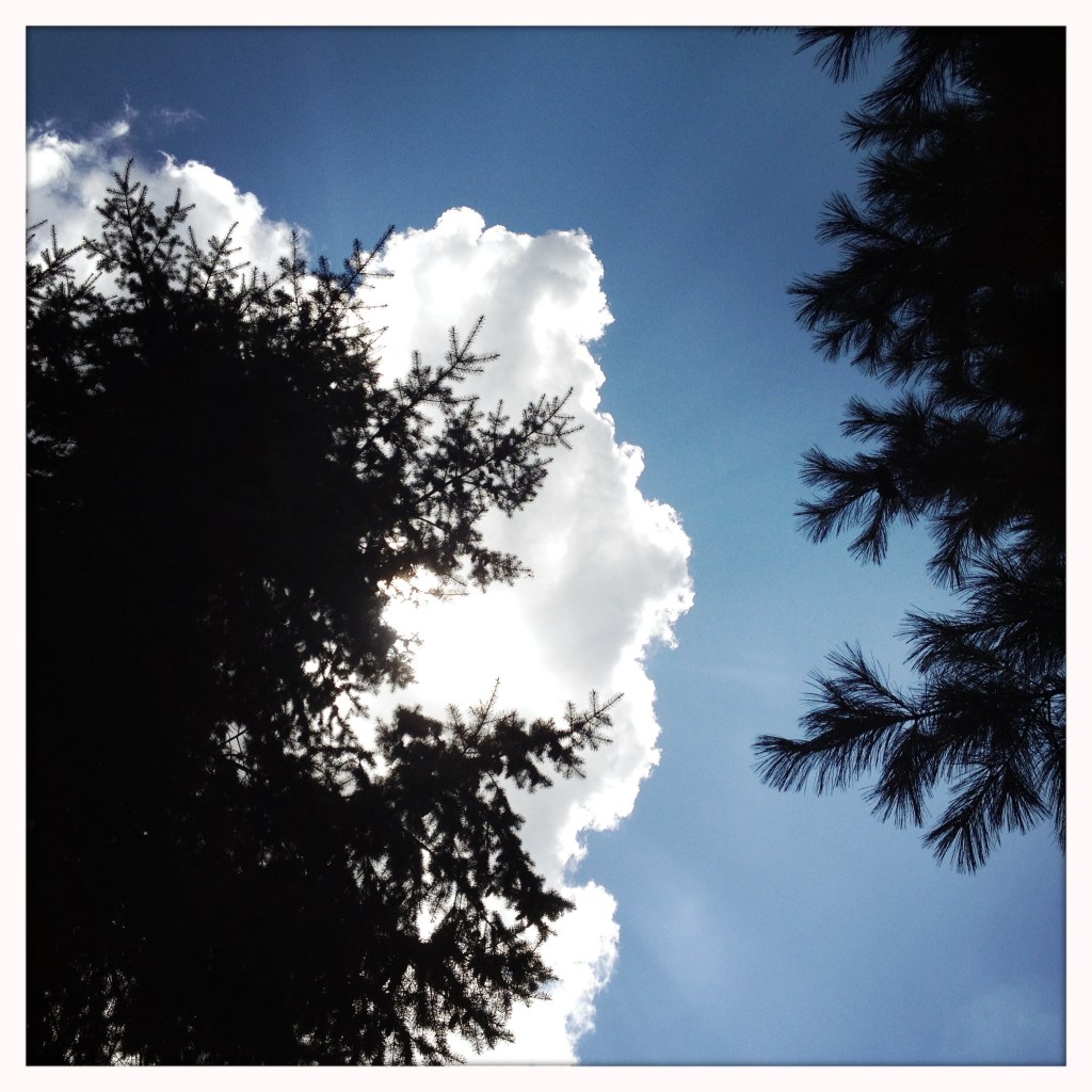 The big spruce / wrapped a cloud around / its shoulders.
