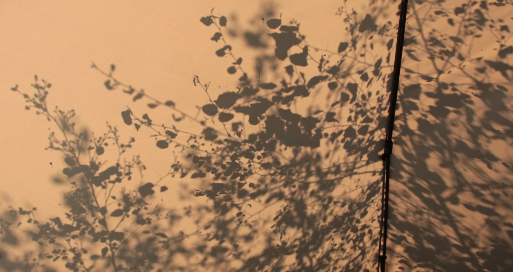 Sun, twigs and branches / making shadows, silhouettes / dance inside the tent.
